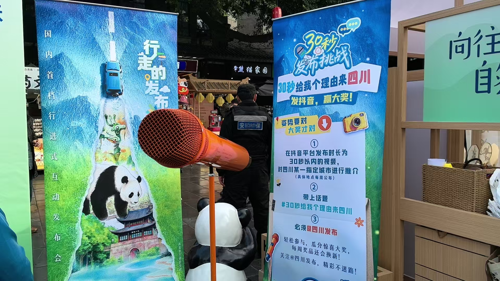 值得一提的是,四川发布在现场设置了30秒发布挑战区域,不少市民和游客走进挑战区,拿起手机站在“大话筒”前,录制起“30秒给我个理由来四川”,现场笑声阵阵,掌声不断。